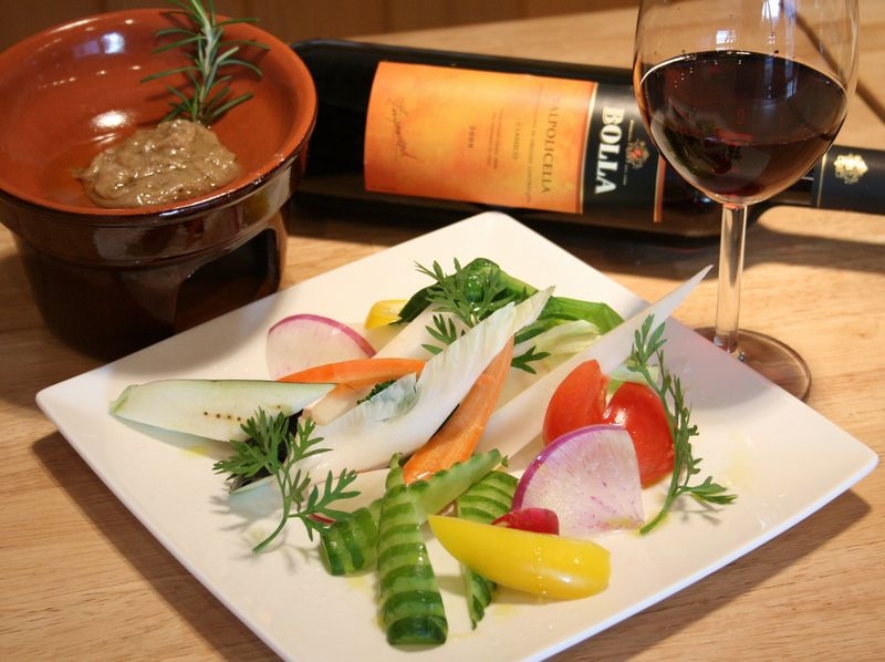 契約農家さんから直接仕入れた、美味しい新鮮な有機野菜を、自家製アンチョビにんにくソースにつけてお召し上がり下さい。