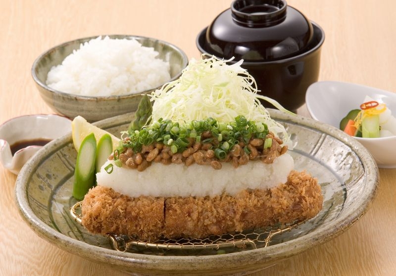 水戸と言えば納豆!茨城の名物+とんかつを組み合わせた、さっぱりとしたとんかつです。納豆好きな方は是非ご賞味下さい。やみつきになる一品です。【1,580円】