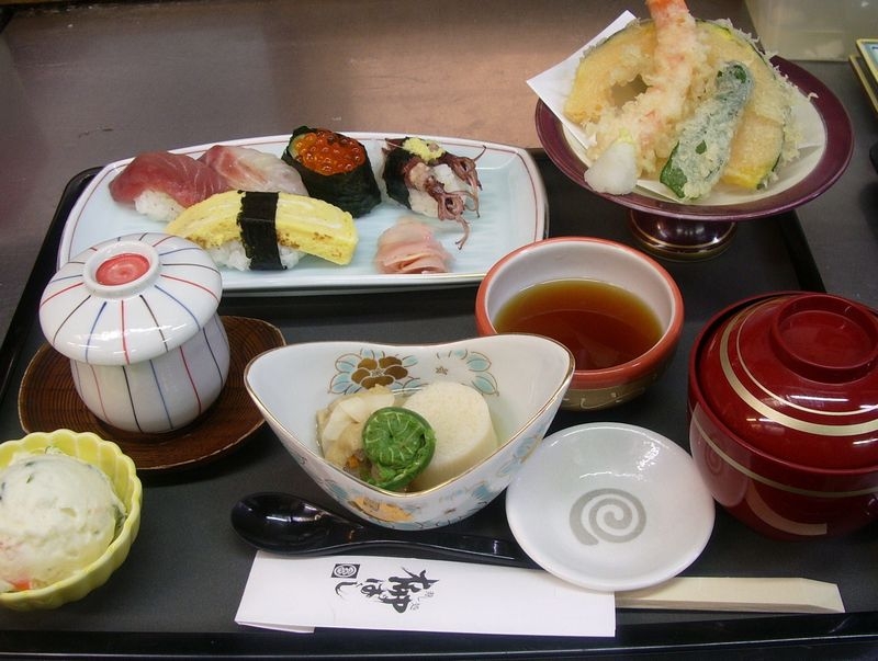 寿司一人前に天ぷら・焼物・茶わん蒸しがついたお得なセット