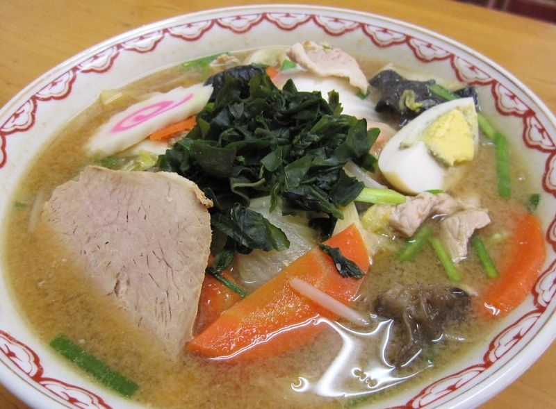 ホタテ・エビ・イカと白菜・人参・キャベツなどの野菜がたっぷり!魚貝とのダブルスープで濃厚な味に。ひと口すすればパワーアップ!(しょうゆ味もあり)【740円】