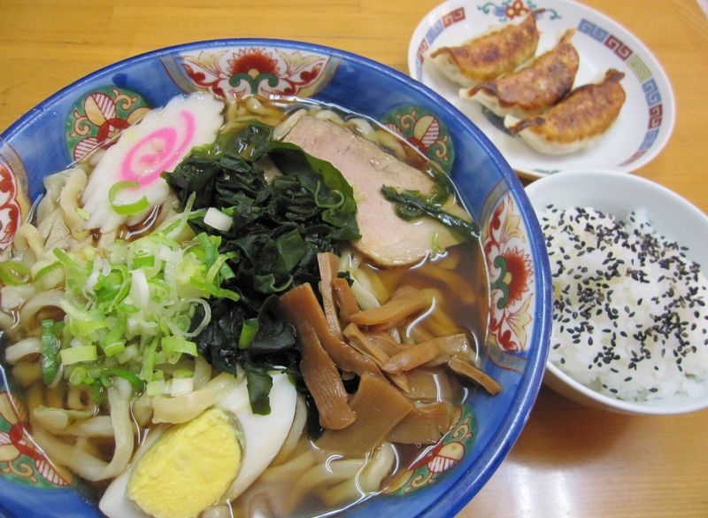 中ラーメン・ごはん・ギョーザ(3個)がセットになったボリューム満点メニュー。食べればお腹の底から元気が溢れます。
