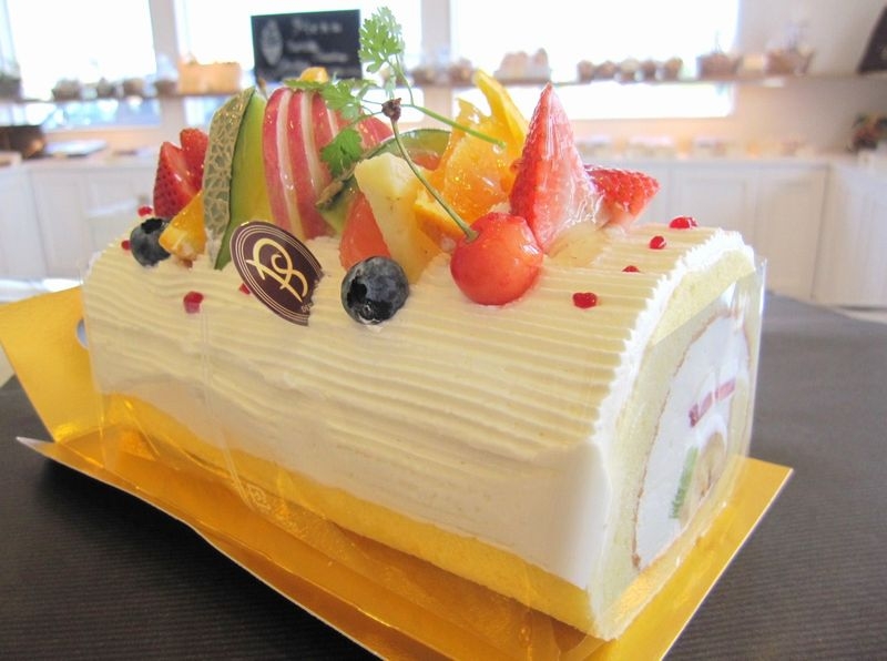 フワフワのスポンジに、生クリームと色鮮やかなフルーツをたっぷり使ったロールケーキです。お好きな大きさにカットしてお召し上がり下さい。【1,600円】