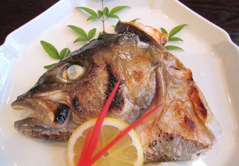 脂ののったカンパチの大きな頭を丸ごと焼いたボリュームたっぷりのかま焼。その味と大きさには驚きです。