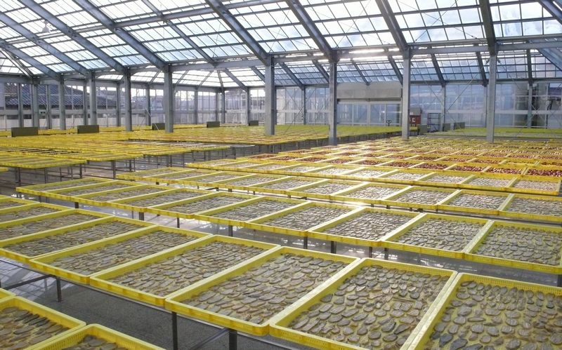 冬の風物詩『ほしいも』の干してり風景です。当社の干し場は、外からのゴミなどをシャットアウトして、衛生的に作業しております。