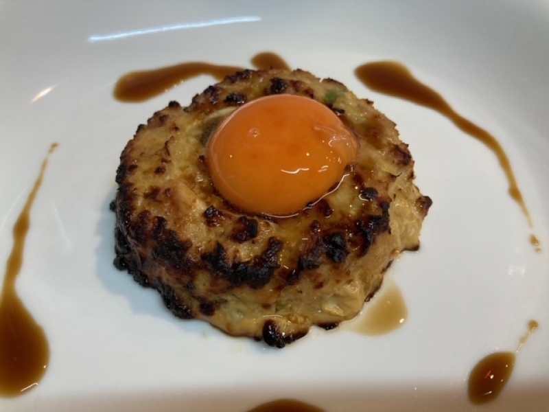 当店の肉料理の中で一番人気のメニューです、ひたちなか産のおれんじ玉子の卵黄を崩してどうぞ・・・