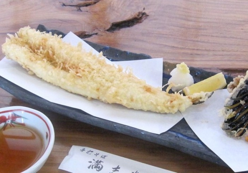 目の前に出されたその大きさにビックリ!自慢の江戸前穴子は、衣はサクサク、中身はふんわり柔らか。岩塩が良く合います。