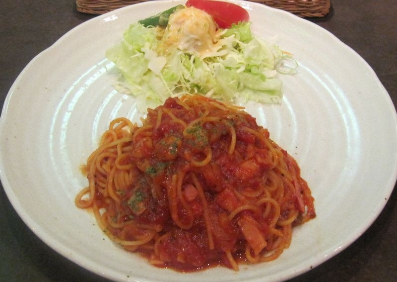 若者からお年寄りまでの人気メニュー。数種類のキノコと自家製醤油が絶妙なスパゲティです。
